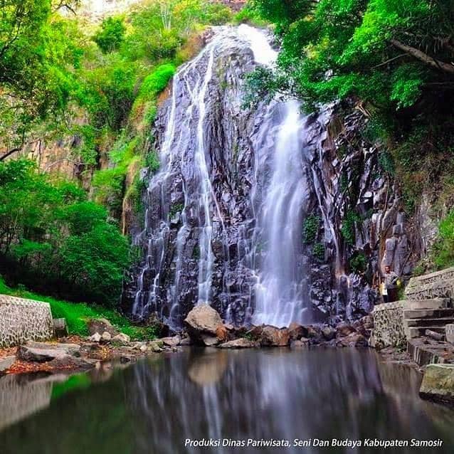 Terletak di kawasan Taman Wisata Rohani Bukit Gibeon, air terjun ini menawarkan pemandangan alam yang memukau dan suasana yang sejuk. Air terjun ini dikelilingi oleh hutan hijau yang masih alami, bikin suasana jadi makin asri dan segar. Tempat ini pas banget buat kamu yang pengen menikmati keindahan alam sambil refreshing dari rutinitas sehari-hari.
