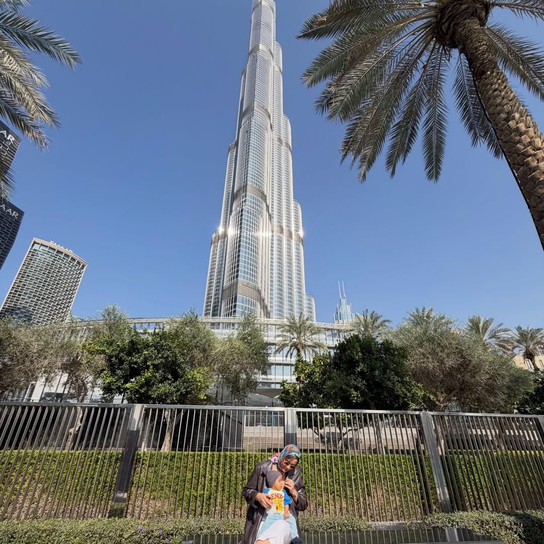 Liburan ke Dubai menjadi momen spesial bagi seluruh keluarga. Mereka berkeliling kota sambil menikmati pemandangan yang luar biasa. Salah satu tempat yang tak pernah dilewatkan adalah Burj Khalifa, ikon kota Dubai. Kimmy dan suaminya pun tidak lupa untuk berpose di depan bangunan megah tersebut.