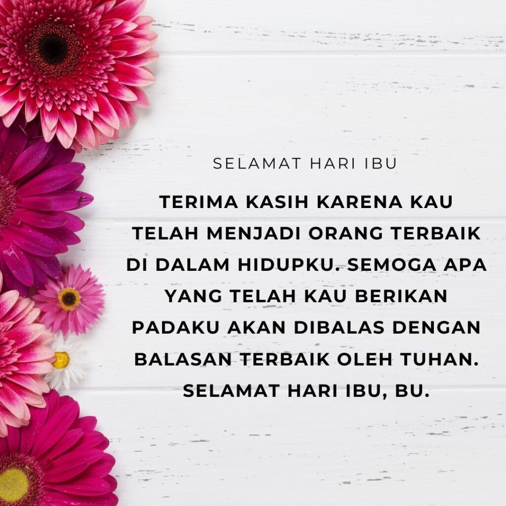 • Tambahkan sentuhan pribadi: Menambahkan nama atau kesan spesifik tentang ibu bisa membuat ucapan lebih personal dan bermakna.