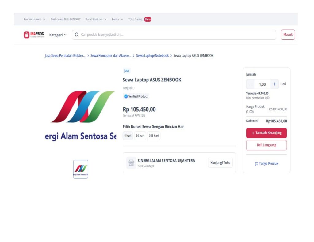 Berdasarkan data Rencana Umum Pengadaan (RUP) pemerintah, paket Belanja Jasa Sewa Laptop dengan Kode RUP 54856671 tercatat memiliki nilai kontrak sebesar Rp4.588.247.160. Paket tersebut digunakan untuk penyediaan 140 unit laptop merek Asus Zenbook melalui penyedia PT SAlam Sentosa Sejahtera.