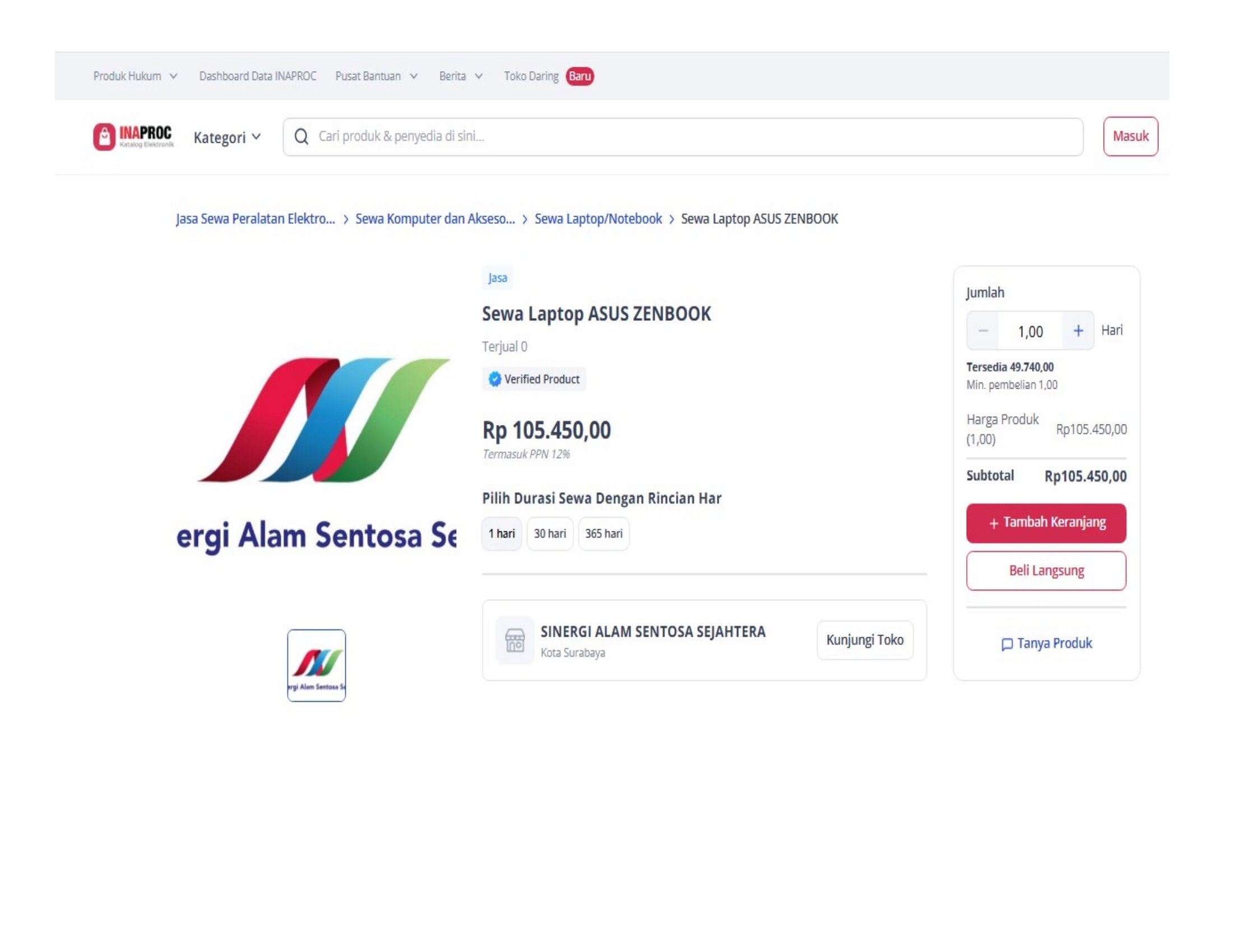 Penelusuran melalui katalog pengadaan pemerintah menunjukkan bahwa harga sewa yang ditayangkan penyedia mencapai Rp105.450 per unit per hari. Jika dihitung selama satu tahun, nilai tersebut setara sekitar Rp32.773.194 per unit.
