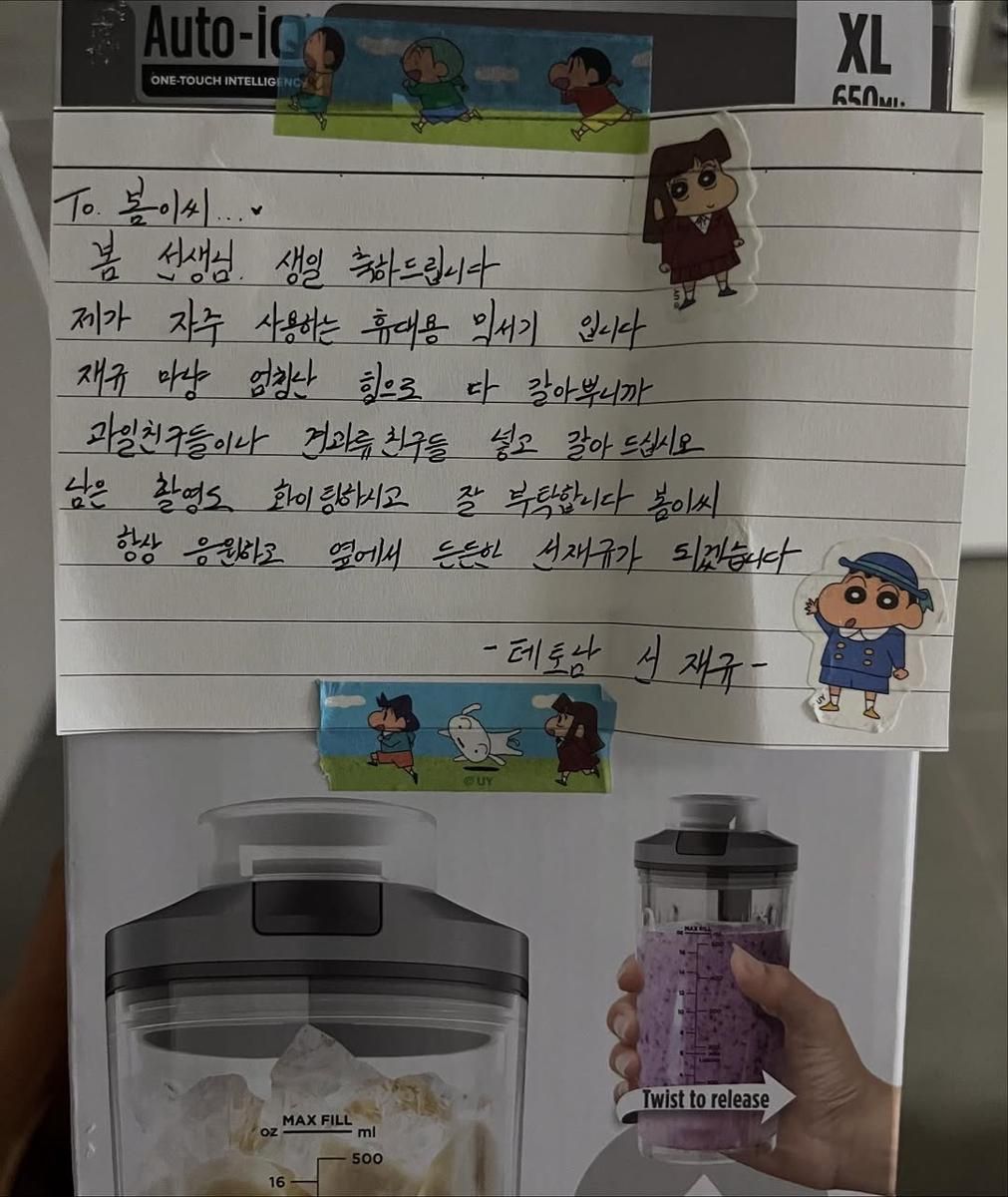 7. Sang lawan main, Ahn Bo Hyun juga turut memberikan kado untuknya dengan pesan manis, nih