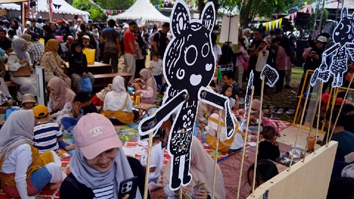 Pengunjung Pasar Seni ITB berjejal di area panggung musik di dalam kampus, 19 Oktober 2025. Tempo/Anwar Siswadi