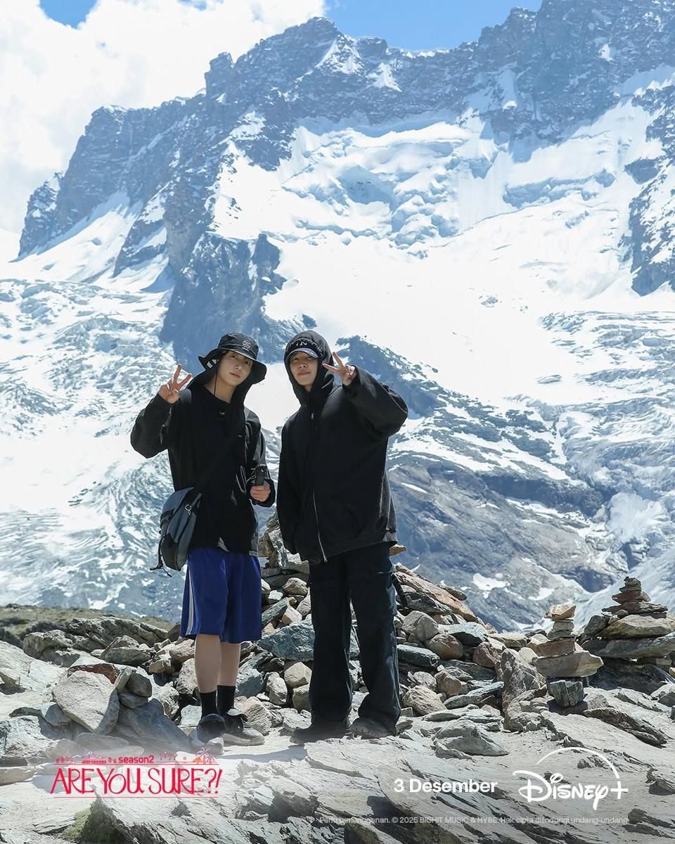 Pada Rabu (5/11/2025), Disney+ telah merilis beberapa bocoran untuk Are You Sure?! Season 2. Dalam foto-foto itu, Jimin dan Jungkook tampak tersenyum santai dengan latar Matterhorn di Swiss, serta menikmati pemandangan malam dari atas perahu di Pantai Hoi An, Vietnam.