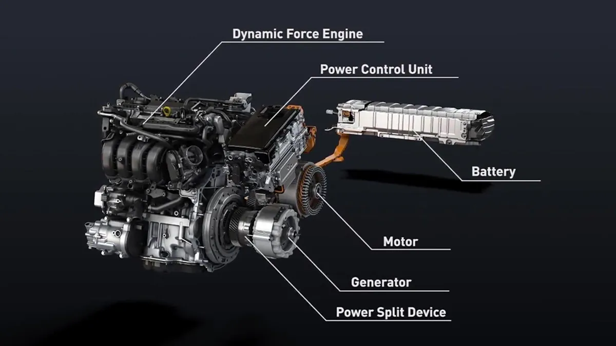 Toyota menggunakan sistem Serial-Parallel Hybrid, yang dikenal dengan nama Toyota Hybrid System (THS). Sistem ini terdiri dari beberapa komponen penting, seperti mesin bensin, motor listrik (MG1), generator listrik (MG2), Power Control Unit (PCU), dan Power Split Device (PSD). PSD merupakan komponen kunci dalam proses distribusi tenaga antara mesin bensin dan motor listrik.