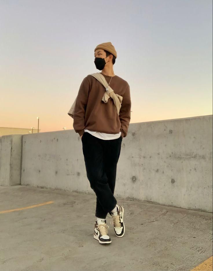 Sweater atau hoodie cokelat tua dengan bawahan hitam cocok jadi outfit nongkrong bareng teman. Jangan lupa beanie hat untuk tampilan streetwear look yang trendi. Tampilan ini sangat cocok dipilih buat kamu yang mau hangout di malam hari. Nantinya sweater akan memberikan rasa hangat sekaligus trendy dalam waktu bersamaan. Ditambah dengan celana warna monokrom yang semakin membuat tampilan kamu lebih enak dipandang.