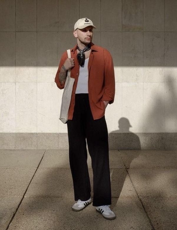 Pilihan warna yang lebih terang juga jangan sampai kamu lewatkan begitu saja. Apalagi buat kamu yang memang terbiasa untuk tampilan yang lebih mencolok. Warna cerah dapat membuat kamu tampak lebih fresh. Cobalah kemeja warna terracotta sebagai outer. Sebagai pelengkap, kamu bisa memakai scarf dan baseball hat. Dijamin, fashion ini akan merepresentasikan dirimu dengan baik.