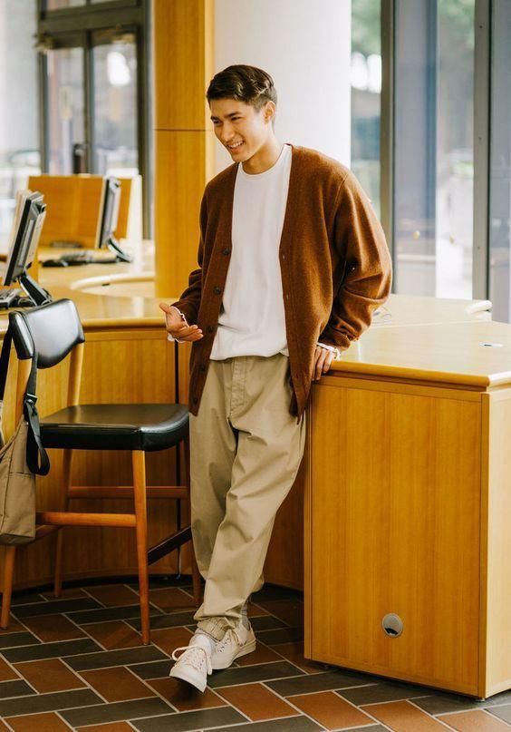Terakhir, buat kamu yang ingin tampil lebih kasual maka bisa menjatuhkan pilihan pada fashion ini. Makin kece dengan outfit earth tone laki-laki menggunakan cardigan dan jogger pants nuansa cokelat yang hangat. Kombinasi yang simple dan hangat akan membuat tampilan kamu jadi enak dipandang. Sangat cocok dikenakan ketika di dalam ruangan ataupun ketika sedang musim dingin.