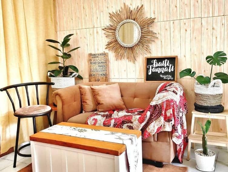 Ruang tamu dengan luas terbatas tidak menghalangimu untuk meletakan banyak pajangan. Kamu bisa menyiasatinya dengan pajangan gantung supaya tetap bisa hemat tempat