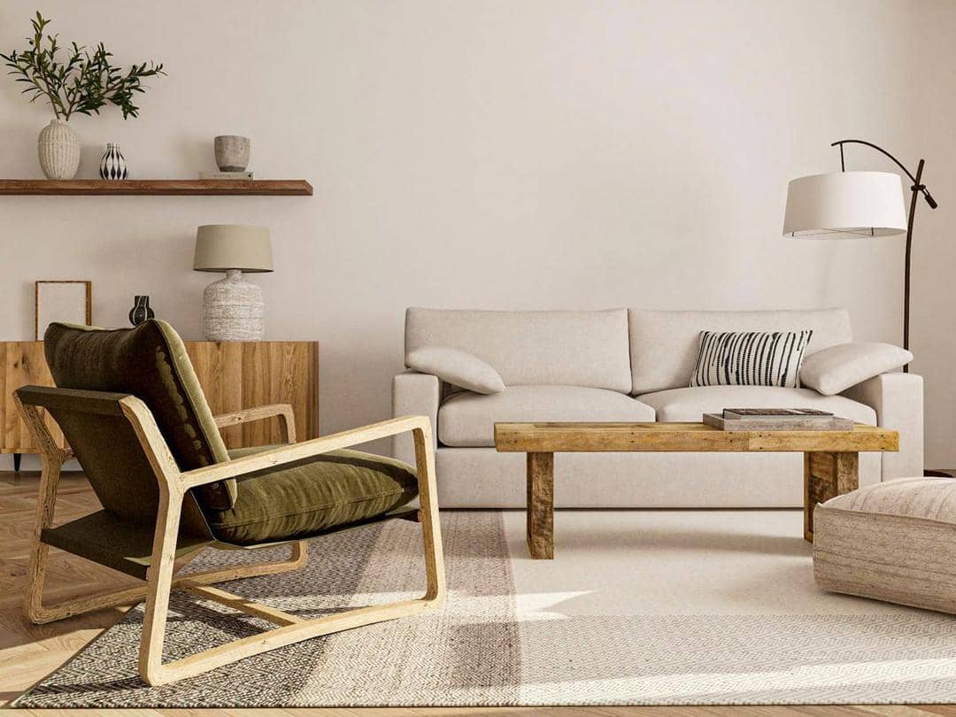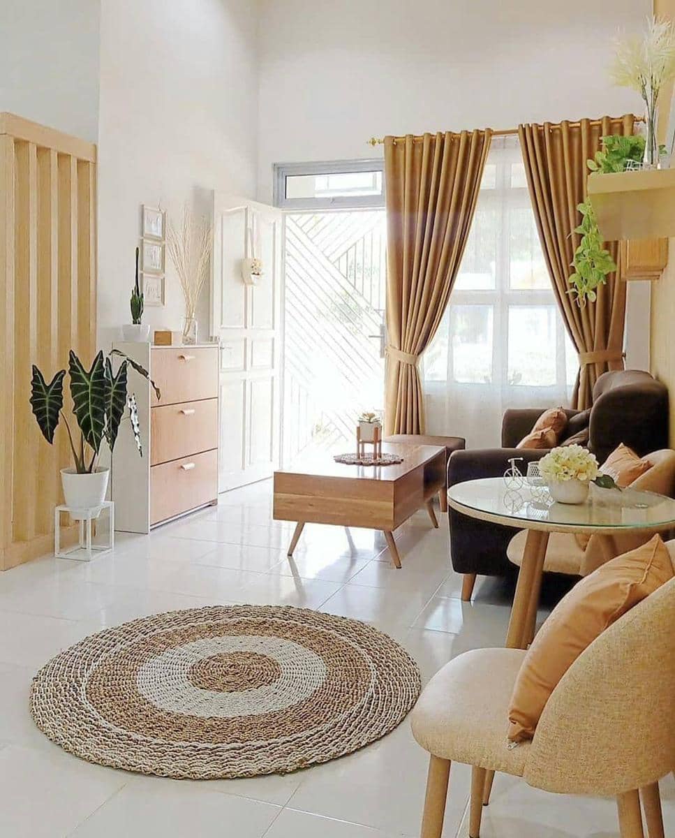 Karpet rotan menjadi pilihan yang tepat untuk memberikan kesan ruangan yang nyaman. Jika kamu ingin membuat ruangan terasa lebih unik, furnitur berupa kayu bisa dipakai sebagai kombinasi