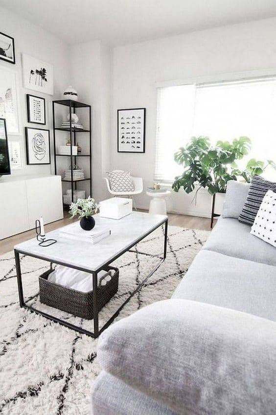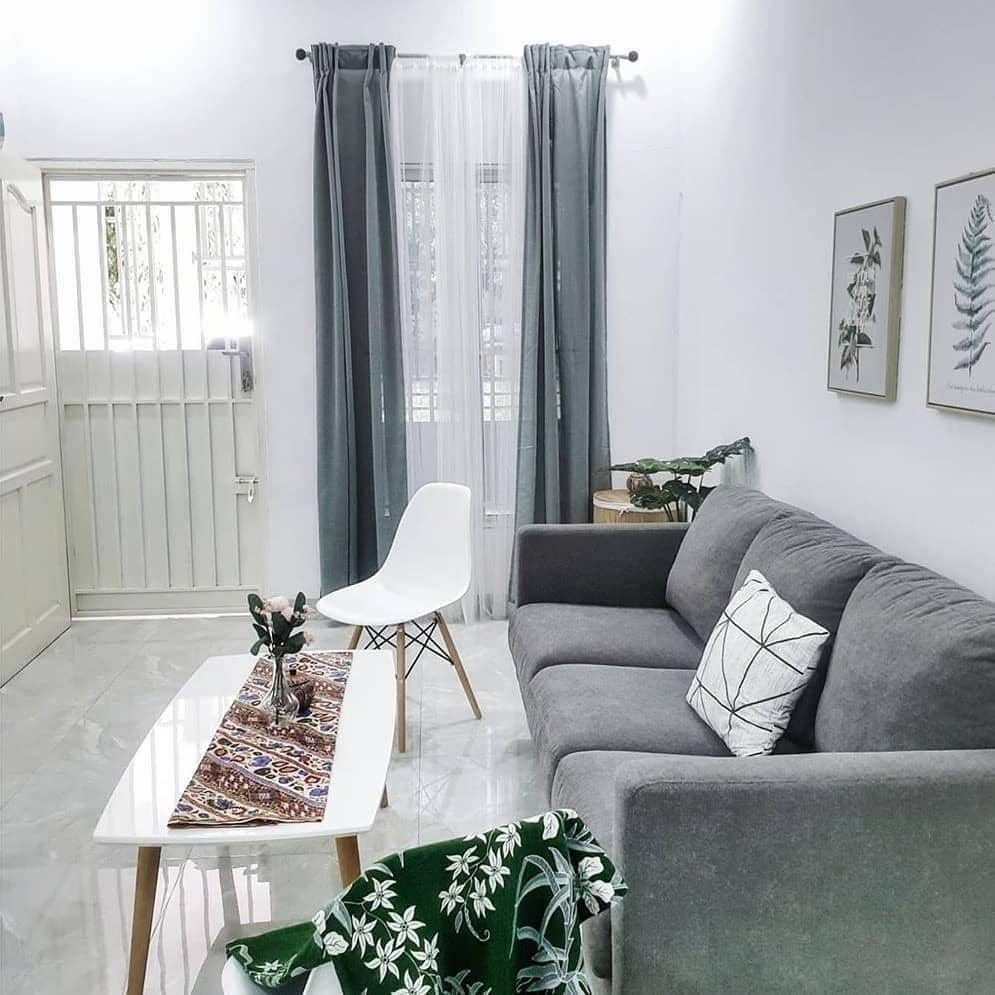 Sederhana namun tetap Instagrammable, ruang tamu yang didominasi putih-hitam ini membuat ruang sempit terasa lebih lega