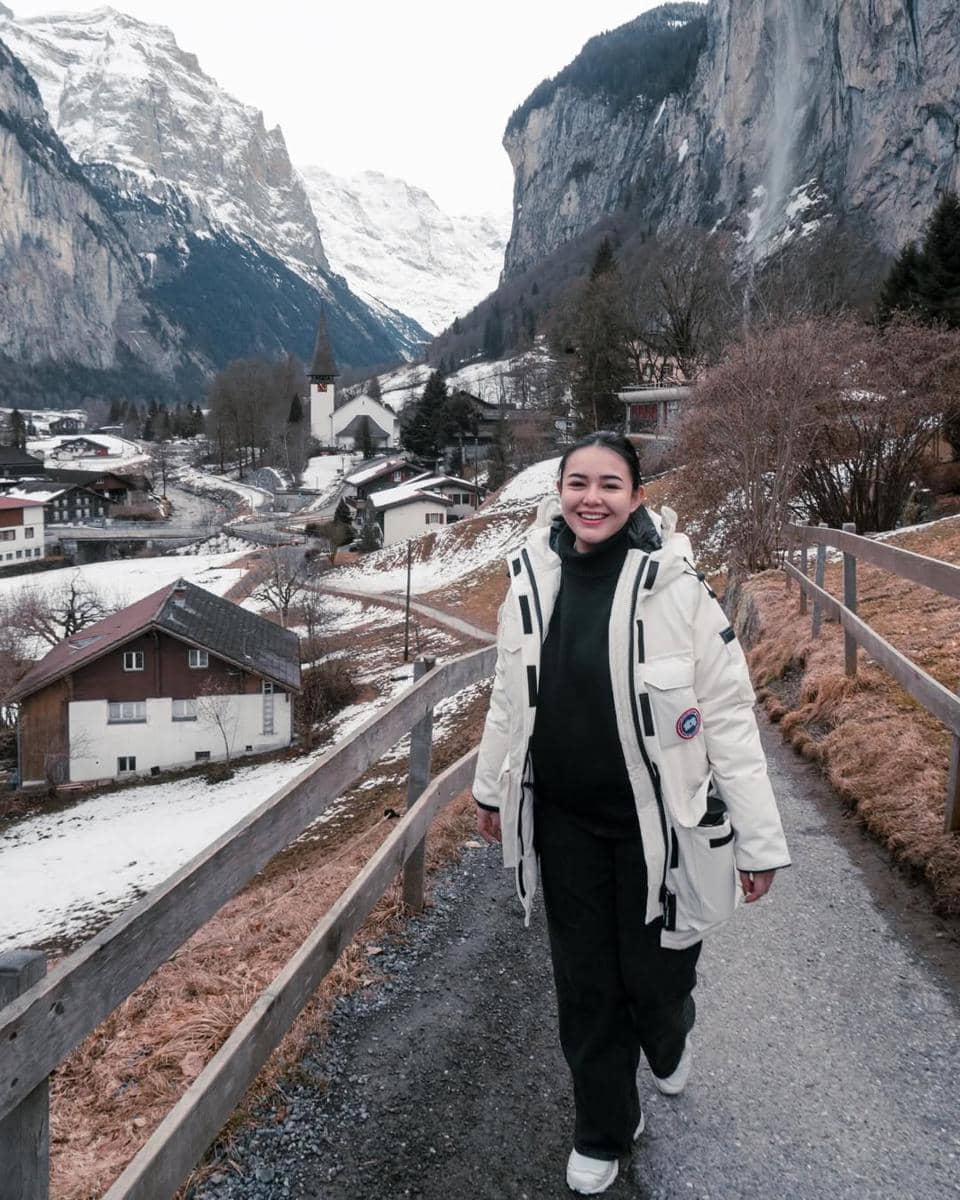 Amanda Manopo membagikan foto estetik dirinya mengenakan jaket musim dingin. Di foto ini, ia berada di salah satu desa paling indah di dunia, yaitu Lauterbrunnen, Swiss.