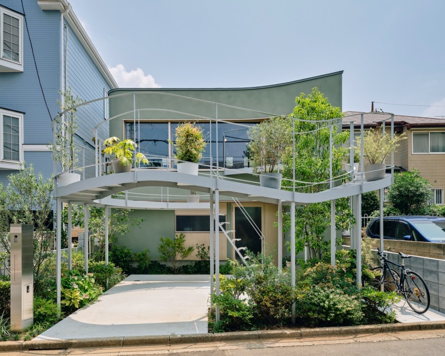 Ketika ruang horizontal terbatas, memaksimalkan ruang secara vertikal adalah pilihan yang baik. Desain taman depan rumah minimalis bertingkat dari Hiroyuki Oinuma Architect & Associates tidak hanya memberikan fungsi maksimal, tetapi juga memberikan nilai estetika pada area luar rumah Anda.