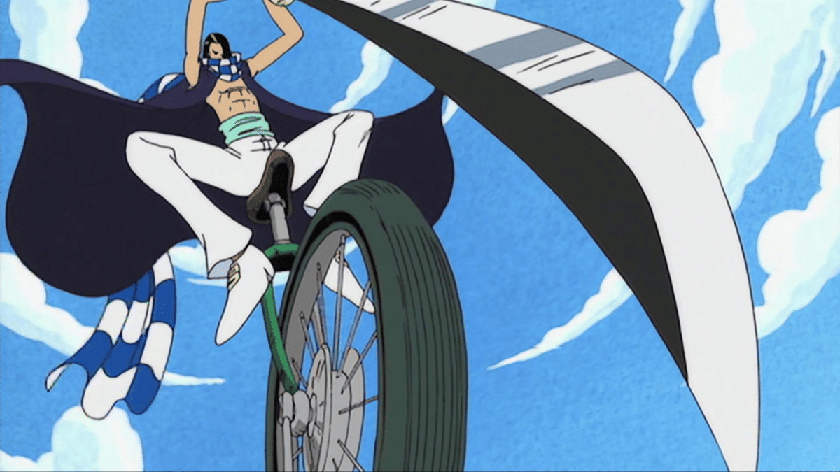 Cabaji, salah satu musuh awal One Piece, dikenal dengan gaya bertarung akrobatik yang mirip sirkus. Ia sering menggunakan unicycle atau sepeda roda satu untuk bermanuver. Meski lemah, gaya bertarungnya menarik perhatian banyak orang. Sayangnya, teknik seperti ini semakin jarang muncul setelah fokus cerita beralih ke Buah Iblis dan Haki.