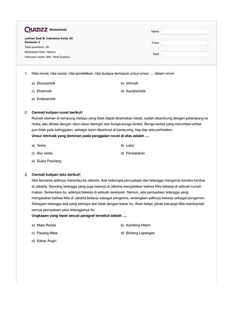 Soal Bahasa Indonesia Kelas 12: