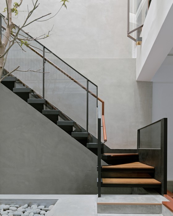 2. Railing Tangga Minimalis Unik dengan Kombinasi Rangka Metal dan Panel Mesh