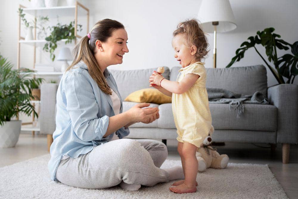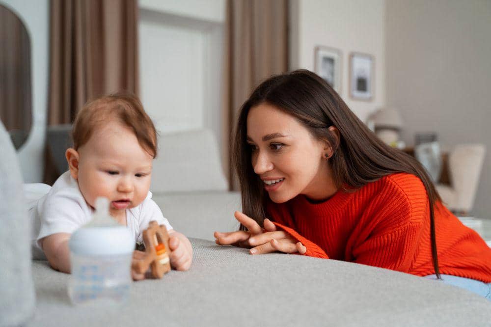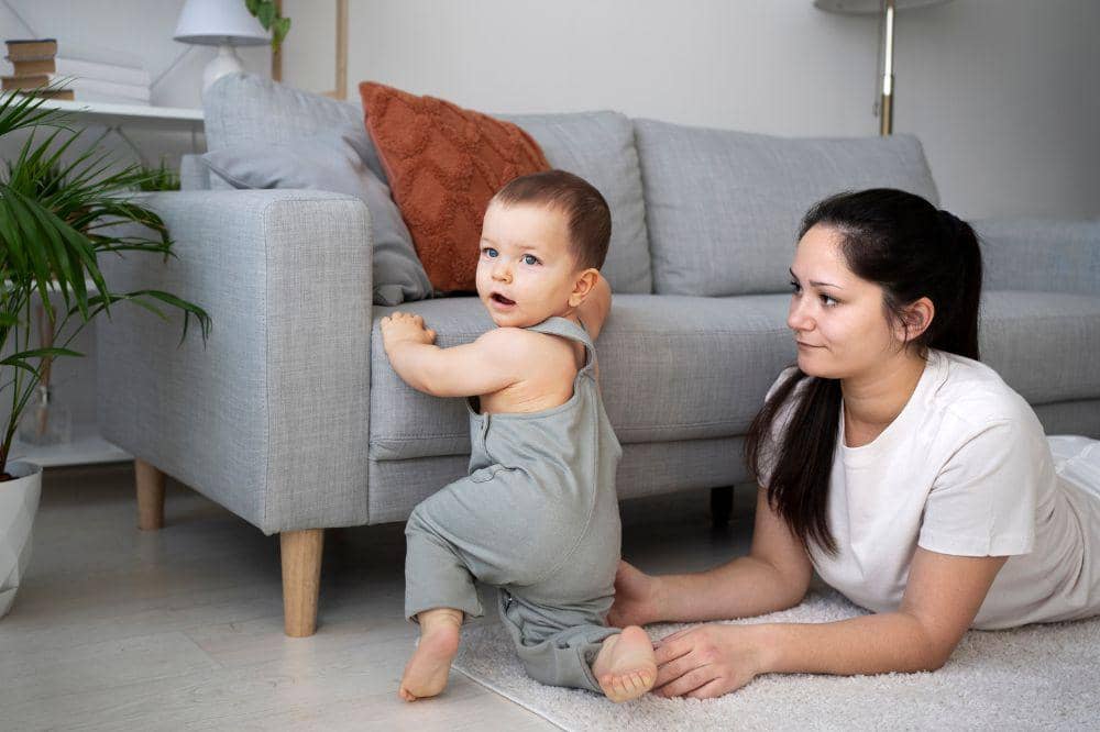 Di usia 7 bulan ke atas, si Kecil biasanya mulai merangkak atau belajar berdiri. Di masa ini, ia sering menoleh ke belakang untuk memastikan Mama masih ada di dekatnya. Kehadiran Mama memberikan rasa aman yang membuatnya berani mencoba hal baru.