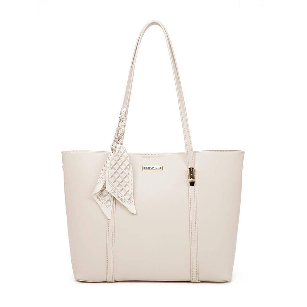 Palomino Brenda Tote Bag dirancang dengan PU leather premium yang eksklusif. Tas ini dilengkapi scarf aksen motif print dan logo Palomino yang stunning. Aksen gesper gold hardware pada bagian handle drop-nya membuat tas terlihat classy. Tas memiliki satu kompartemen utama dengan ritsleting dan dua kompartemen tambahan berkancing magnet. Ada juga satu kantong dalam dengan ritsleting dan satu sleeve dalam. Bisa digunakan untuk membawa laptop berukuran 14 inci.