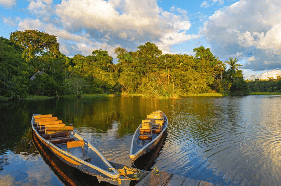 Petualangan di Amazon berpusat di kota Manaus, di mana kamu bisa mengunjungi Teatro Amazonas, sebuah gedung opera klasik yang buka untuk tur hingga sore hari. Dari pelabuhan, kamu akan memulai perjalanan air untuk menyaksikan Meeting of Waters, fenomena bertemunya dua arus sungai berbeda warna yang tidak menyatu.