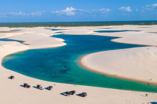 Kunjungan ke Lençóis Maranhenses memerlukan titik berangkat dari kota Barreirinhas. Meskipun akses ke taman nasional ini gratis, secara teknis kamu harus menyewa kendaraan jip 4×4 seharga R$150-250 (sekitar Rp480.000–Rp800.000) karena medannya yang berupa pasir lepas. Tur biasanya dibagi menjadi waktu pagi atau sore hari untuk mengejar momen matahari terbenam di Lagoa Bonita.