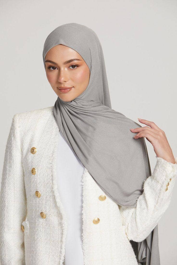 Jika kamu ingin tampil lebih kalem dan lembut, warna beige bisa menjadi pilihan yang tepat. Tone warna ini netral dan bisa digabungkan dengan warna-warna terang seperti merah, biru, hijau, pink, atau kuning. Selain itu, hijab beige juga cocok dikenakan dengan busana polos maupun bermotif.Abu-abu