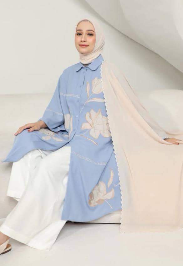 Rekomendasi baju tunik wanita muslimah selanjutnya tampak lebih simple dari Rurik Ambara Tunik. Pakaian ini terbuat dari bahan soft katun twill yang nyaman dipakai. Motif floral yang ada pada beberapa bagian tunik serta warna dusty blue menjadi daya tarik utamanya. Harganya sekitar Rp489 ribuan.