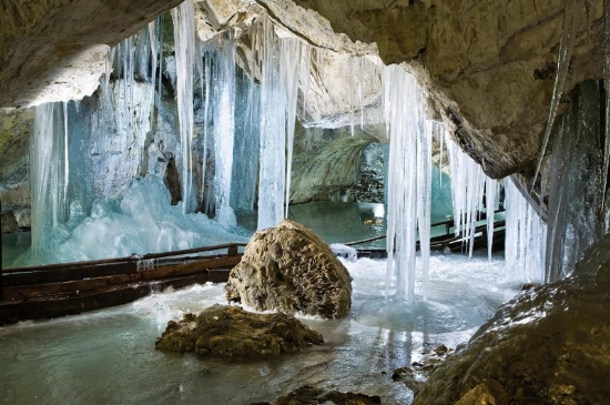 Aktivitas utamanya adalah tur jalan kaki melintasi terowongan es yang memukau. Karena di dalam suhu sangat rendah, spot foto terbaik adalah formasi es “The Great Hall.” Untuk kuliner, daerah sekitar gua terkenal dengan hidangan Pstruh na masle (ikan trout panggang mentega) yang segar dari sungai pegunungan.