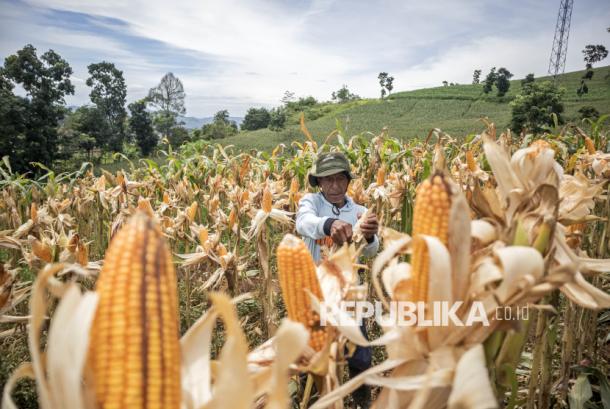 Petani memanen jagung saat kegiatan Panen Raya Jagung Serentak Kuartal I 2026 di Cikalongwetan, Kabupaten Bandung Barat, Jawa Barat, Kamis (8/1/2026). Kepolisian Daerah Jawa Barat menggelar Panen Raya Jagung Serentak Kuartal I 2026 di sejumlah titik dengan total panen mencapai 300 ton dari lahan seluas 75,99 hektar guna menjaga ketersediaan pangan nasional serta mendukung program swasembada pangan nasional khususnya swasembada jagung. – (ANTARA FOTO/Abdan Syakura)