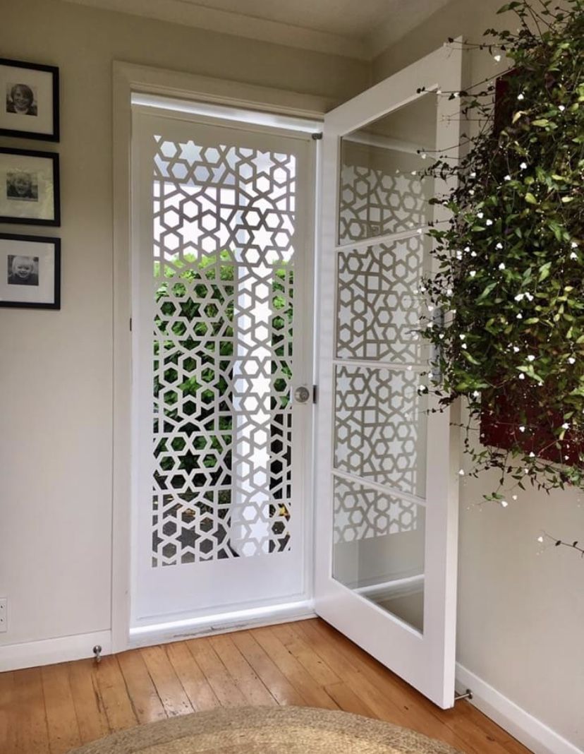Teknik laser cut memungkinkan terciptanya motif unik yang membuat pintu terlihat lebih menarik.Teralis Pintu Warna Hitam Matte