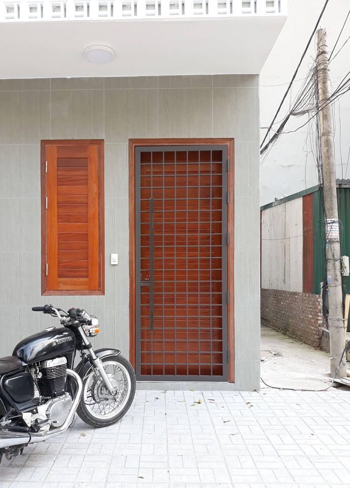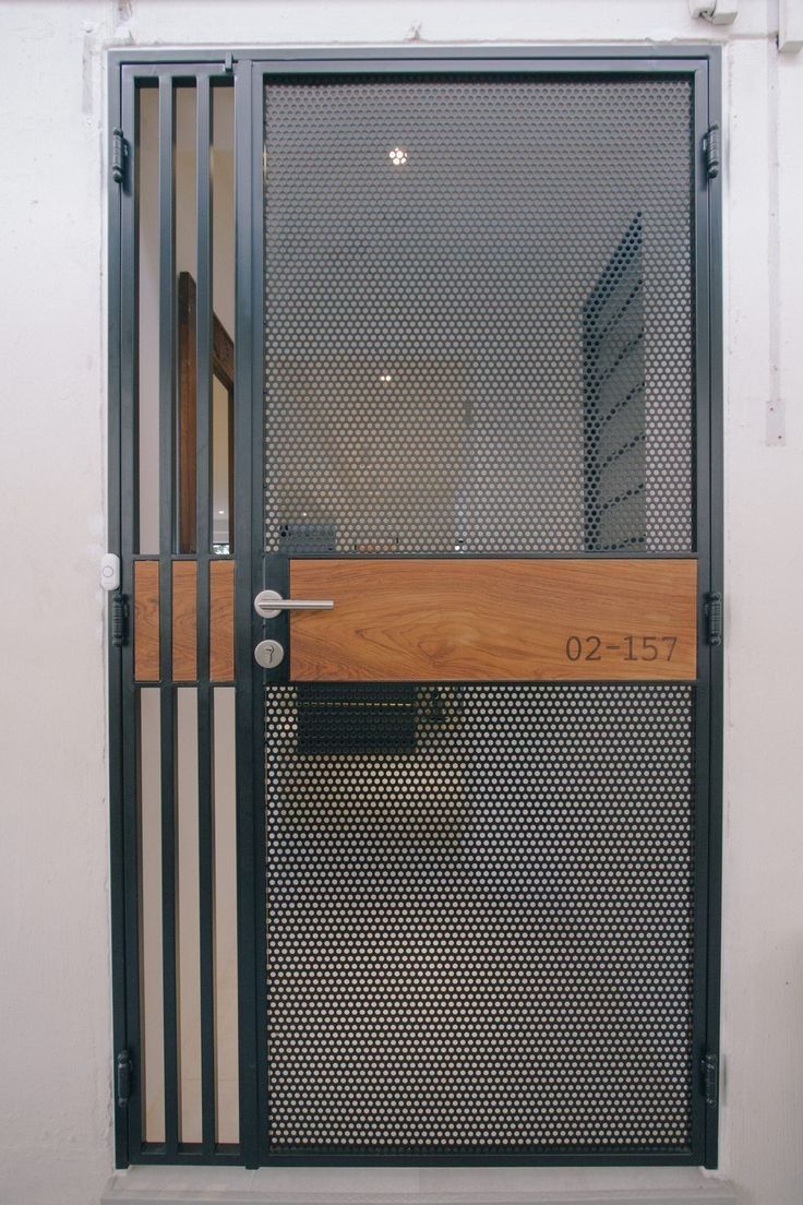 Perpaduan antara teralis besi dan aksen kayu membuat pintu terlihat lebih modern sekaligus terlihat hangat.Teralis Pintu Pola Kotak Klasik