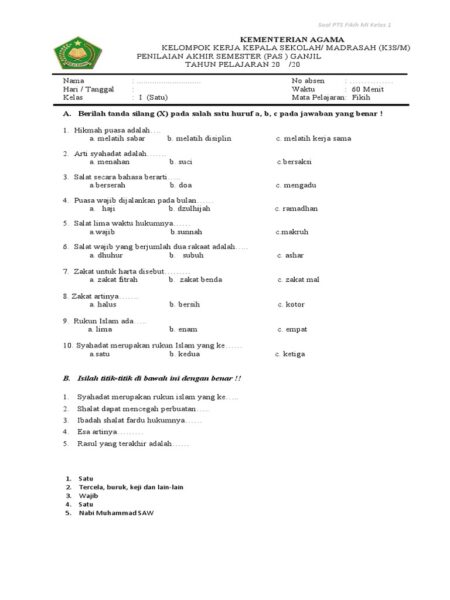 Contoh Soal Penilaian Akhir Tahun (PAT) Fikih Kelas 5 SD Semester 2 Berikut ini adalah contoh soal Penilaian Akhir Tahun…
