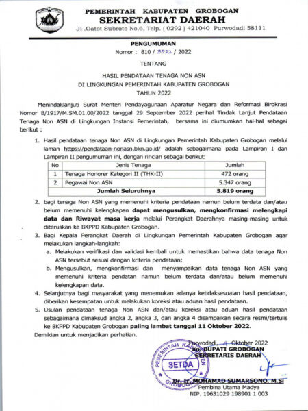 Nasib 1.023 THL di Lingkungan Pemkab Grobogan yang Tak Terdaftar di Database BKN Nasib dari 1.023 Tenaga Harian Lepas (THL)…