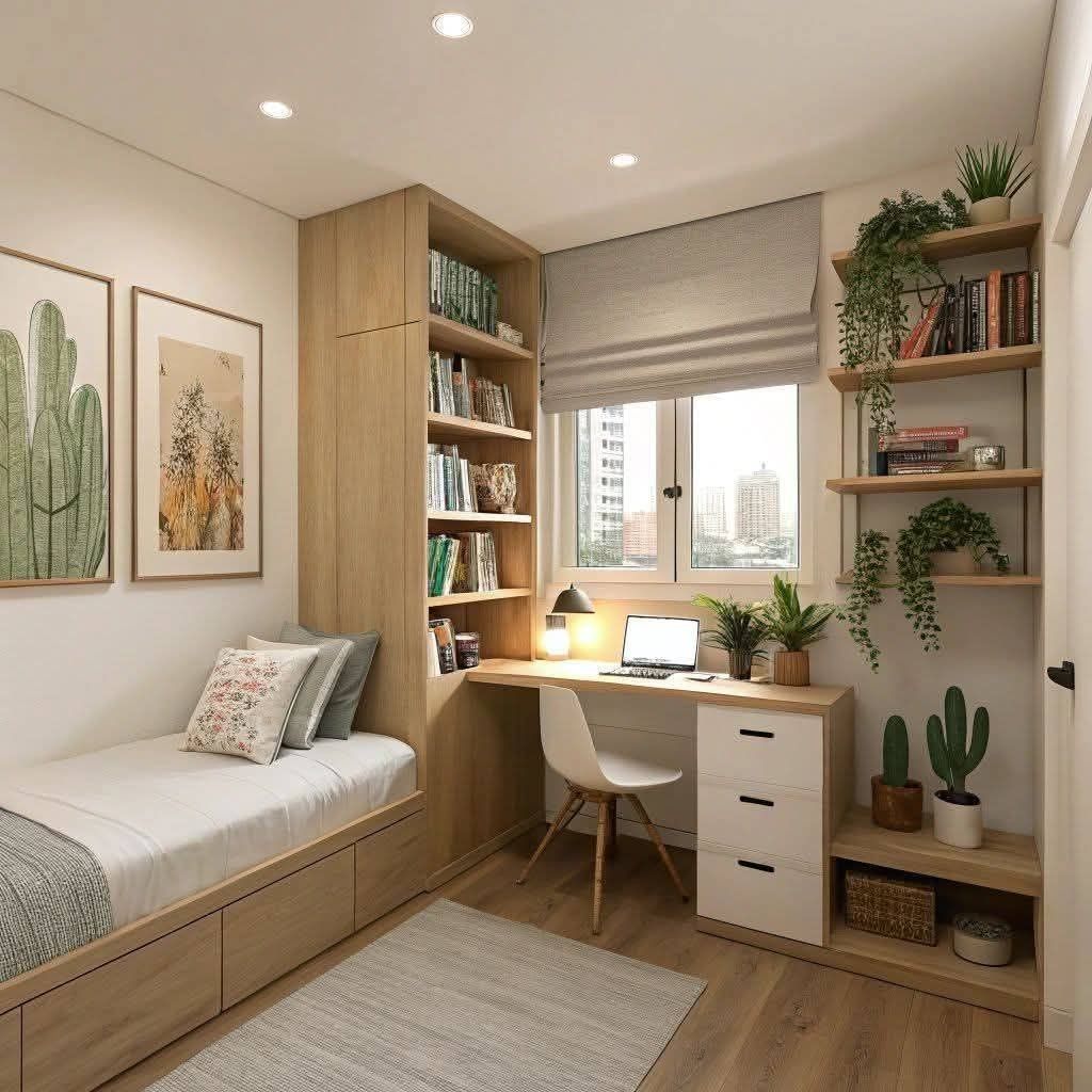 Dekorasi memiliki peran penting dalam menciptakan kamar yang aesthetic. Namun, pada kamar kecil, dekorasi sebaiknya digunakan secara bijak agar tidak membuat ruang terasa penuh. Salah satu dekorasi yang sering digunakan adalah wall art atau poster dengan desain sederhana. Elemen ini dapat memberikan karakter pada kamar tanpa memakan banyak ruang. Tanaman hias kecil juga bisa menjadi pilihan untuk menghadirkan suasana yang lebih segar. Tanaman seperti sukulen atau tanaman gantung sangat cocok untuk kamar berukuran kecil.