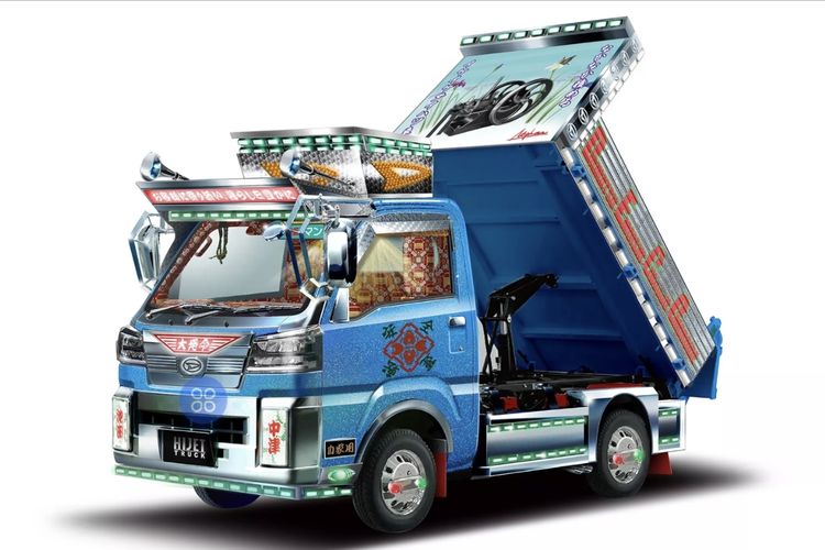 Selain itu, lampu tambahan juga terpasang di area roda, panel samping, bumper depan, hingga atap. Hal ini membuat Hijet Truck ini seolah berfungsi ganda sebagai wahana hiburan keliling. Di dalam kabin, nuansa unik terus berlanjut lewat jok bermotif bunga yang dipadukan dengan ilustrasi berbagai generasi Hijet terdahulu.