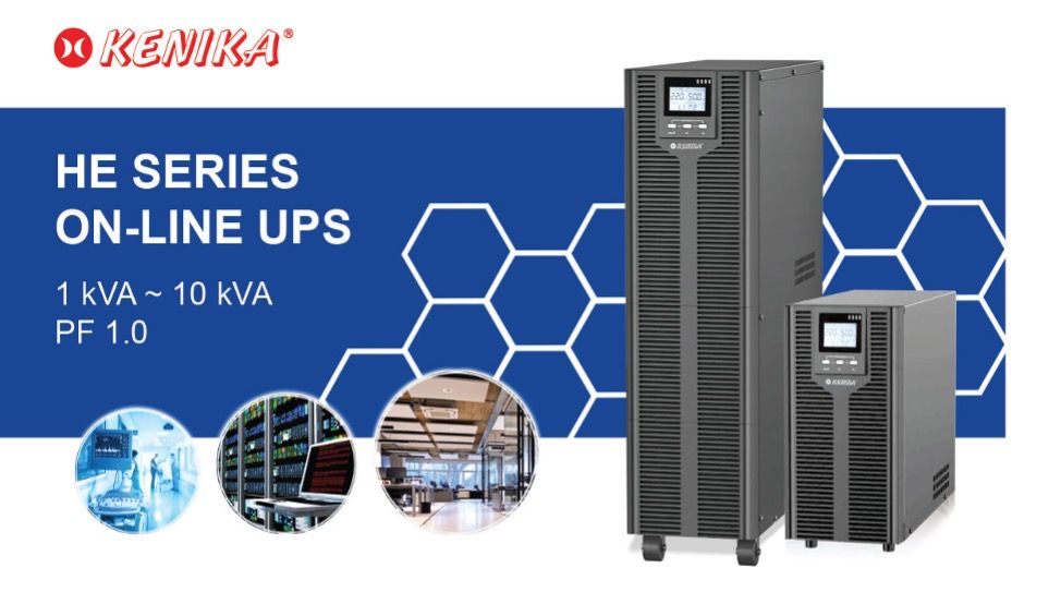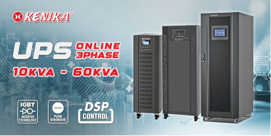 Kenika memiliki lini UPS Online yang mencakup sistem fasa tunggal (single phase) dan fasa tiga (3 phase), dengan kapasitas mulai dari 1 kVA hingga 60 kVA. Berbeda dengan UPS konvensional, sistem ini menggunakan proses double conversion, yaitu mengubah arus AC menjadi DC, lalu kembali ke AC sebelum disalurkan ke perangkat. Melalui proses tersebut, perangkat dapat terisolasi dari berbagai gangguan listrik seperti surge, spike, sag, brownout, blackout, hingga noise dan distorsi harmonik. Selain itu, sistem ini juga menjaga regulasi tegangan dan frekuensi tetap presisi, serta memungkinkan perpindahan daya tanpa jeda (zero transfer time).