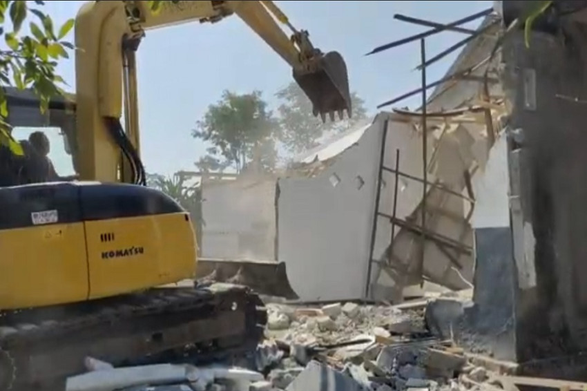 Setelah dimediasi, akhirnya proses perobohan dilakukan pada Kamis (9/4/2026). Namun, proses perobohan masih belum selesai karena bangunan berada di dekat rumah warga lainnya.