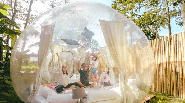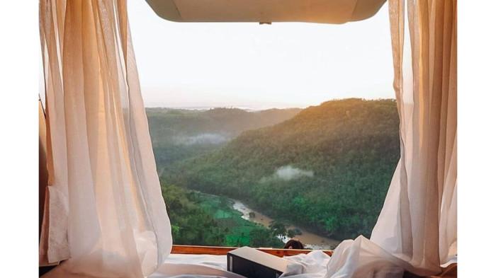 Berlokasi di Kregen, Wukirsari, Kecamatan Cagkringan, Kabupaten Sleman. Glamping di tempat ini menawarkan sensasi berkemah di dalam gelembung transparan dilengkapi gorden untuk menjaga privasi Anda. Harga mulai dari Rp 750 ribu per orang.Jogja Camper Van