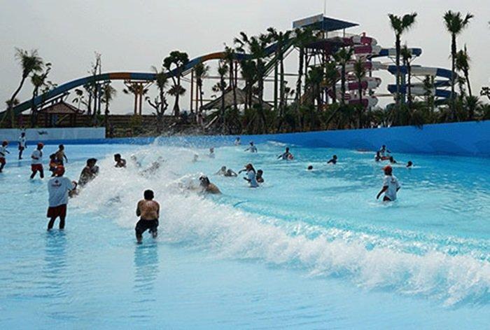 • Beragam wahana seperti kolam ombak, seluncuran warna-warni, dan area bermain keluarga.