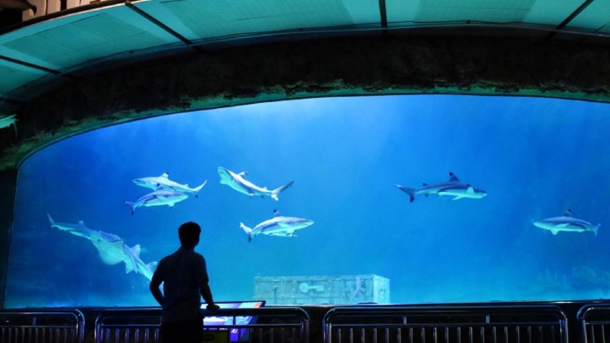 Pengunjung dapat berjalan di dalam terowongan kaca transparan dengan pemandangan ikan besar yang berenang di atas kepala. Sensasi ini memberikan pengalaman seperti berada di dasar laut.