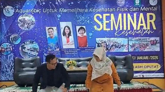 Dalam seminar juga dibahas jika aquarobic bisa mengurangi stres dan menyehatkan mental.