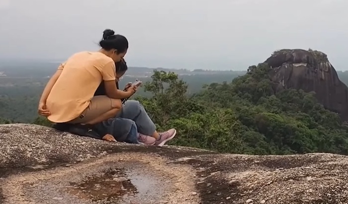 Momen di puncak menjadi bagian paling seru sekaligus menegangkan, karena akses terakhir menuju puncak hanya berupa tangga besi pendek dan jalur bebatuan terjal.