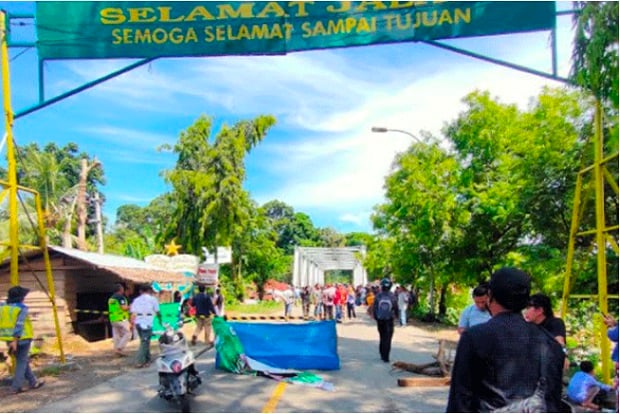 Ketika arus sungai sangat deras, dinding jembatan ambrol. Akibatnya, jembatan ditutup sementara untuk mencegah risiko keselamatan bagi pengguna jalan. Garis polisi berwarna kuning telah dipasang sebagai peringatan agar warga tidak melintasi area tersebut.