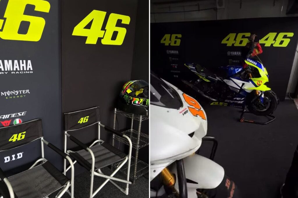 Nama-nama tersebut kembali terlibat dalam ‘track day’ di Mandalika setelah melakukan hal serupa tahun lalu. Namun, ada pemandangan menarik saat motor Yamaha R1 GYTR yang dibuat khusus untuk Rossi terparkir di sebelah motor Honda CBR 100RR-Fireblade milik Marini. Kursi dengan nomor 46 dan helm milik The Doctor juga terlihat dalam unggahan akun VR46 Riders Academy.