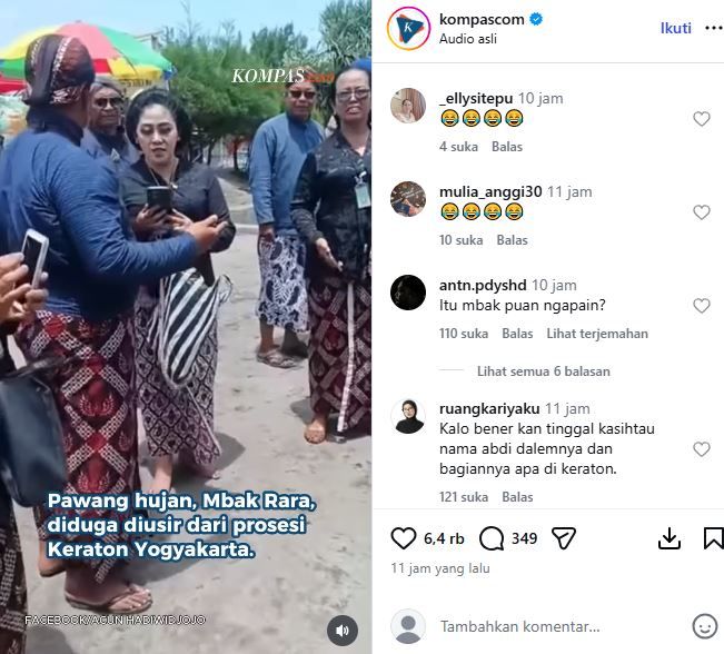 Video viral di media sosial menunjukkan kejadian tersebut. Dalam video itu, Mbak Rara tampak sedang berada di lokasi upacara adat dan terlihat sedang menelepon sambil memakai kebaya hitam. Ia juga terlihat panik ketika dihadapkan oleh beberapa abdi dalem Keraton Yogyakarta.