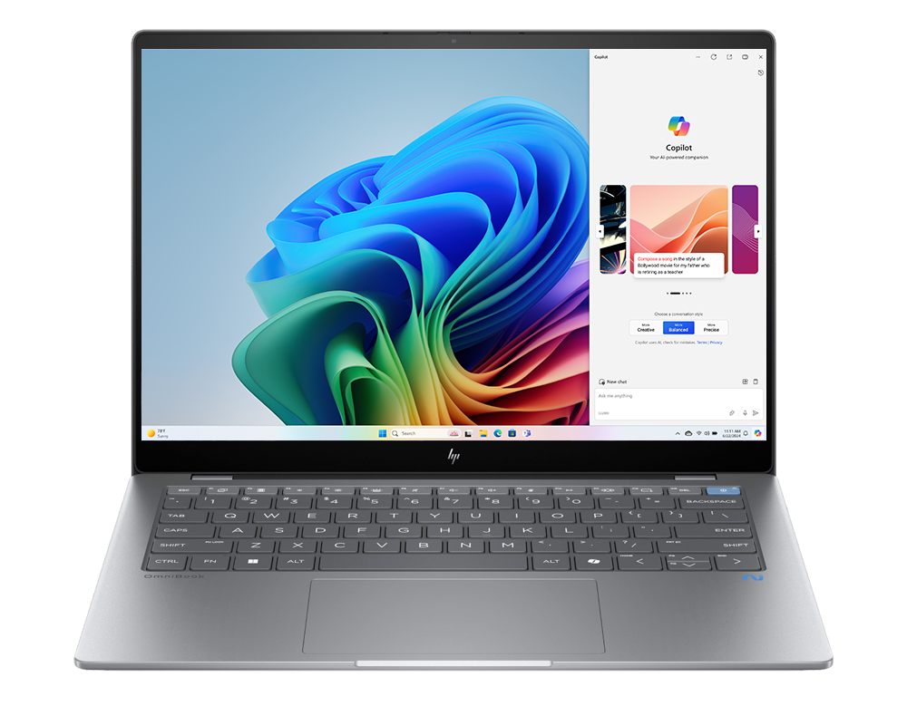 Kedua, OmniBook X yang tersedia dalam versi Flip 14 inci dan 16 inci. Varian ini lebih fleksibel, ditujukan bagi kreator konten dan profesional mobile. Prosesor yang digunakan adalah Intel Core Ultra dengan NPU hingga 47 TOPS atau AMD Ryzen AI 300 Series dengan NPU hingga 50 TOPS. Layar OLED beresolusi 3K dengan refresh rate variabel 48–120 Hz menjadikan pengalaman visual lebih halus dan tajam. OmniBook X juga mendukung stylus opsional, sehingga cocok untuk ilustrator, desainer, atau siapa pun yang membutuhkan interaksi langsung dengan layar.