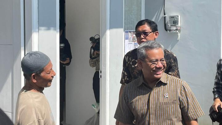 Wakil Menteri Keuangan Suahasil Nazara (kanan) mengunjungi rumah layak huni yang dibangun PT Sarana Multigriya Finansial di Sangkrah, Surakarta, Jawa Tengah, 12 Februari 2026. Tempo/Anastasya Lavenia