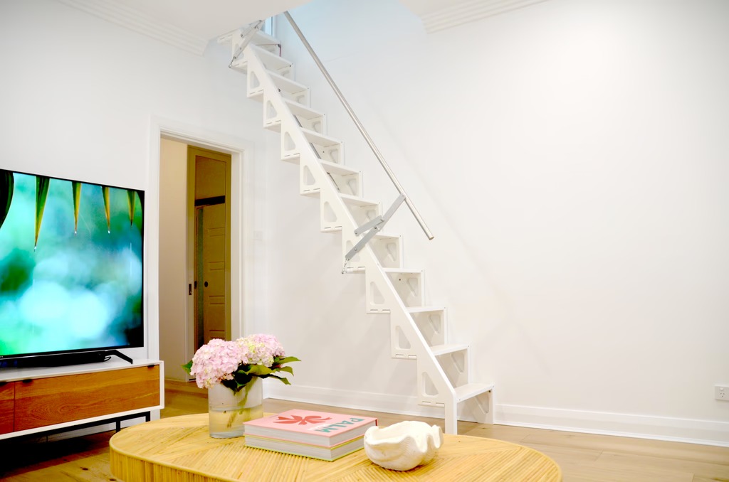 Tangga dapat dilipat sehingga tidak memakan area permanen.
