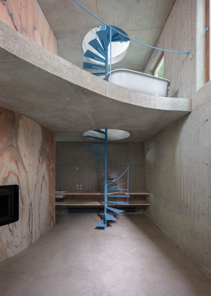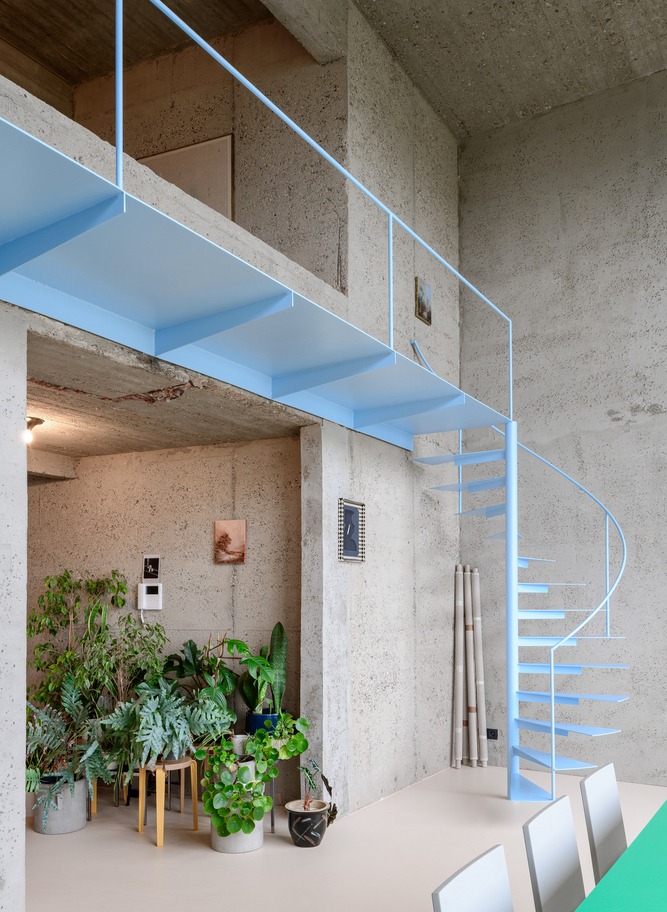 Brutalist Duplex Apartment in de Riverside Tower design by Studio Okami Architects/ Olmo Peeters