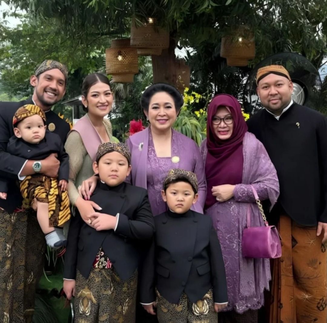 Selain itu, dalam unggahan foto lain terlihat juga putra Prabowo dan Titiek Soeharto, Didiet Prasetyo. Ia tampil gagah mengenakan beskap hitam dipadu jarik cokelat dan blangkon.