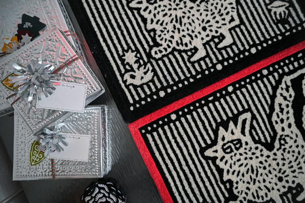 Beranjak ke lantai dua, pengalaman fesyen dikemas lebih imersif melalui instalasi dan proyeksi visual. Karpet bermotif ikonik hasil kolaborasi yang dibuat khusus oleh Fio Carpet menjadi elemen pembuka, sekaligus penegas identitas visual koleksi. Tayangan dokumentasi perjalanan kolaborasi juga memperlihatkan bagaimana busana nggak lahir secara instan, melainkan melalui proses panjang yang penuh eksplorasi.